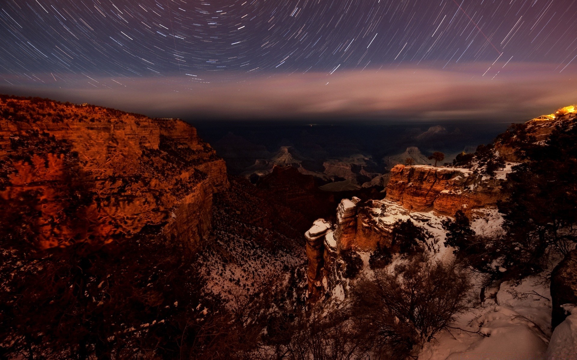 Montanha fantástica no meio da floresta contra o céu estrelado