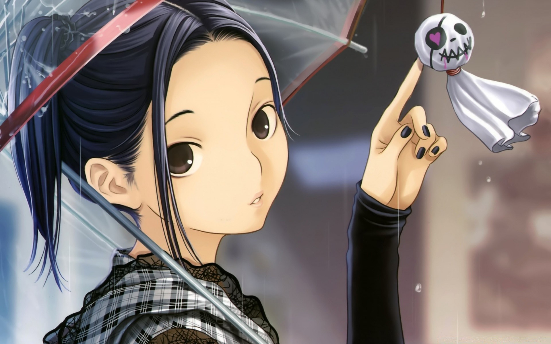 Menina anime com guarda-chuva e lenço