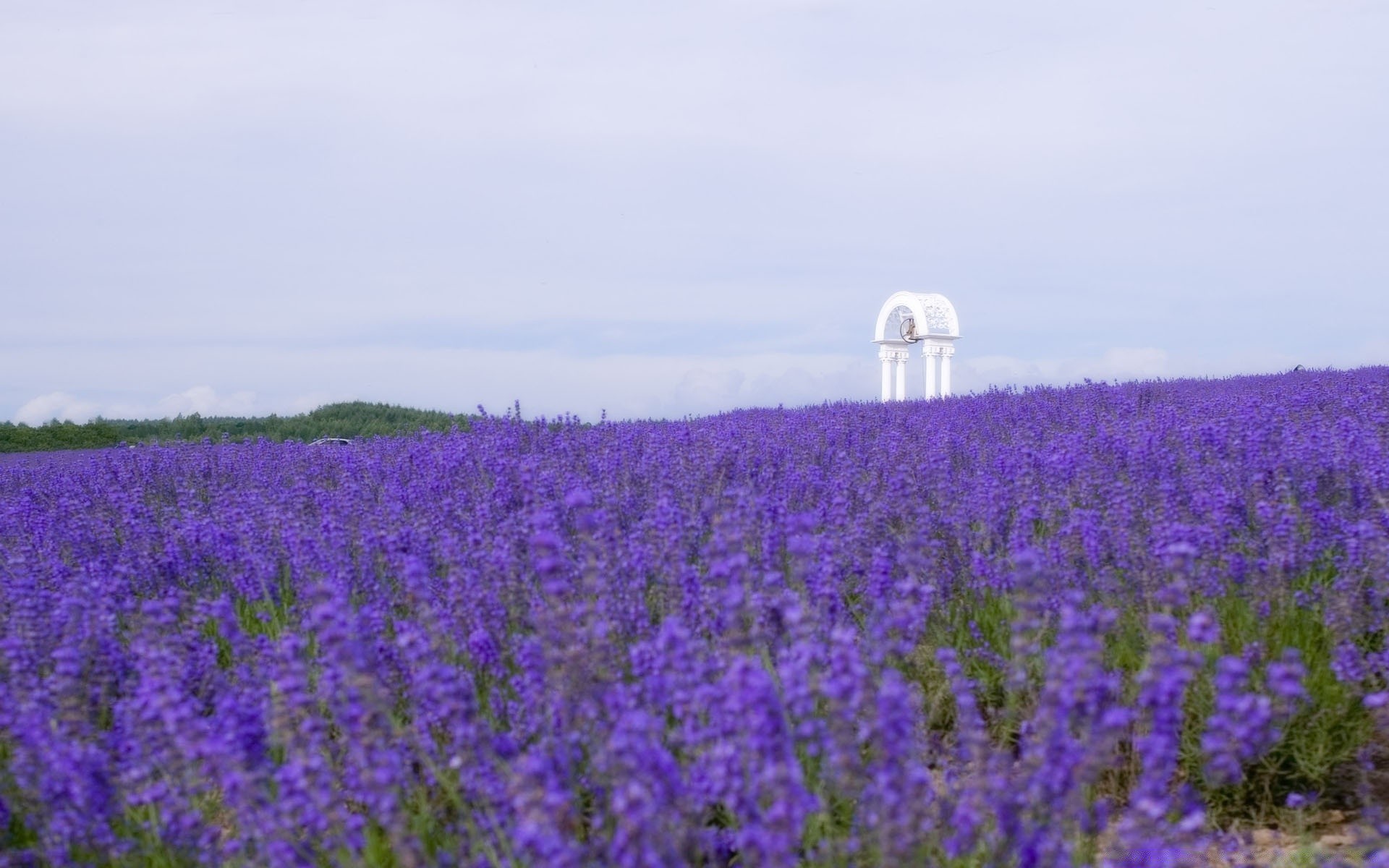 Céu azul, sol ofuscante. Campo verde iluminado pelo sol escaldante