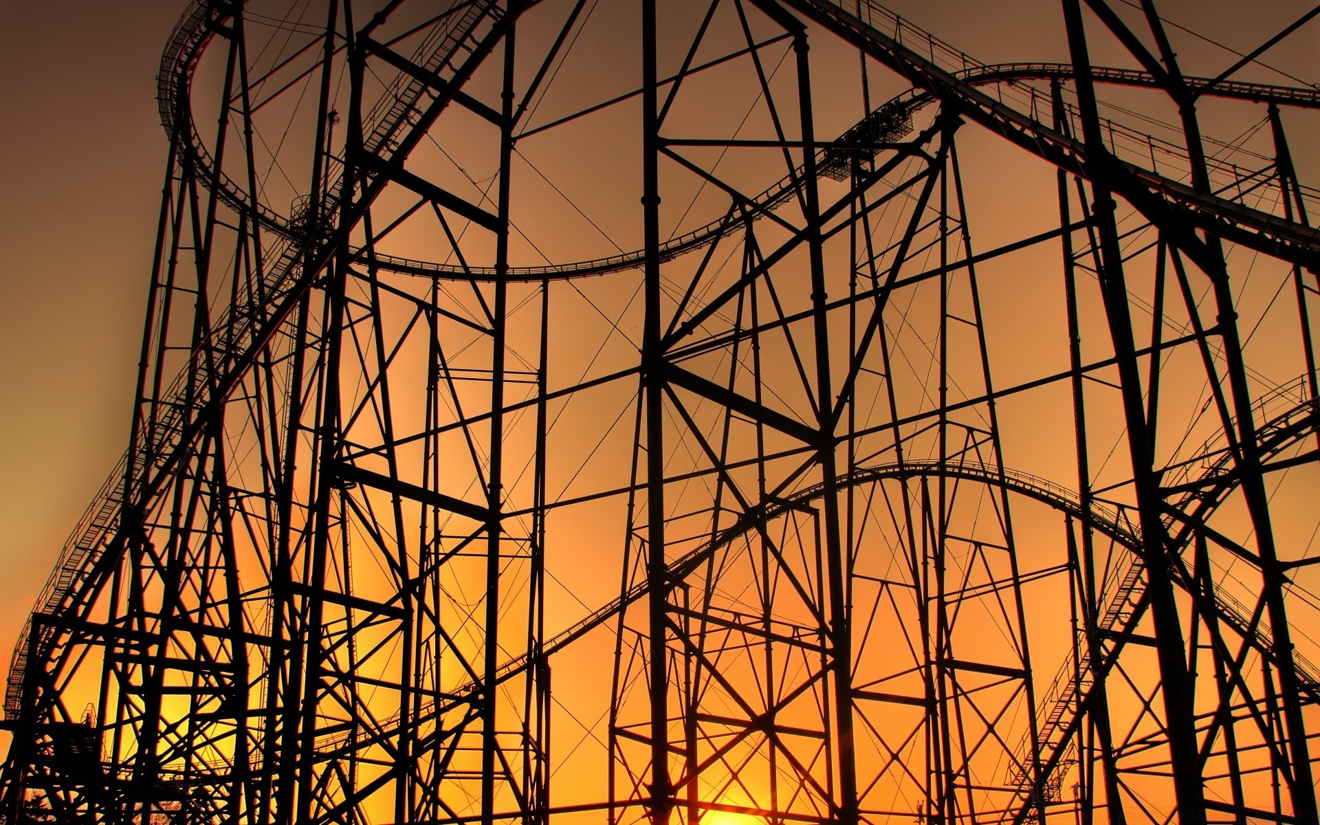 Atrás da cerca de malha luzes borradas vermelhas no fundo azul