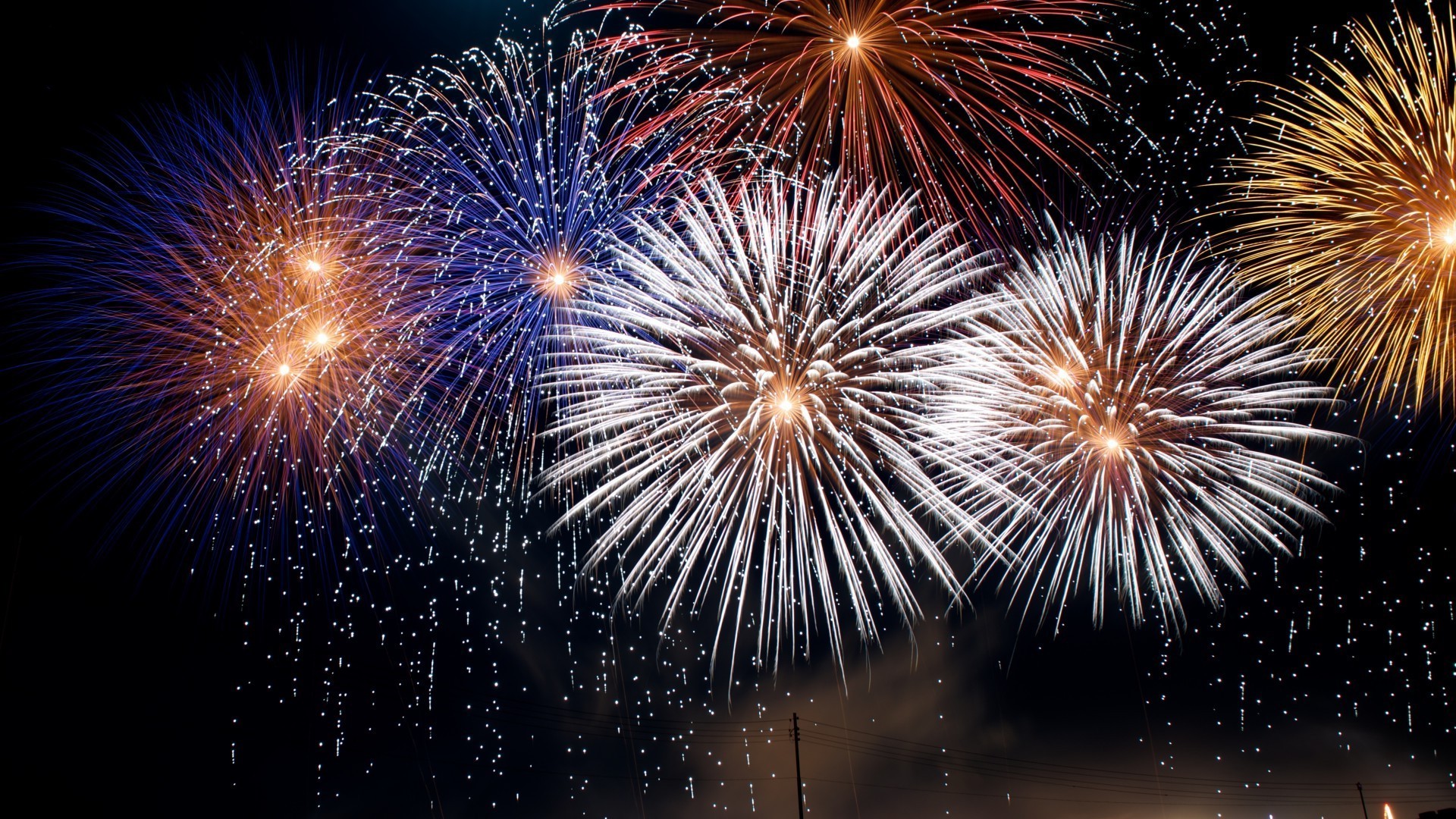 Céu noturno com fogos de artifício