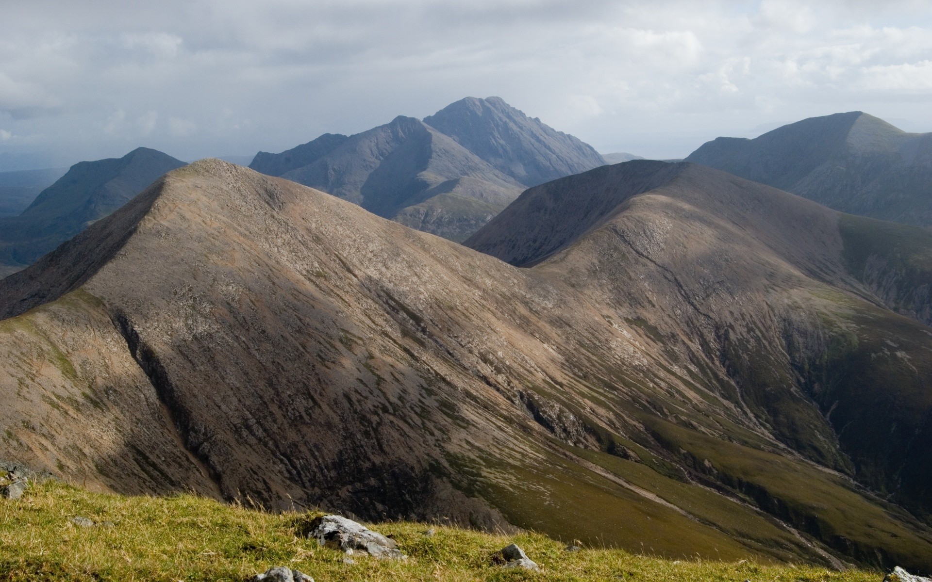 Montanhas altas sob o céu coberto de neve