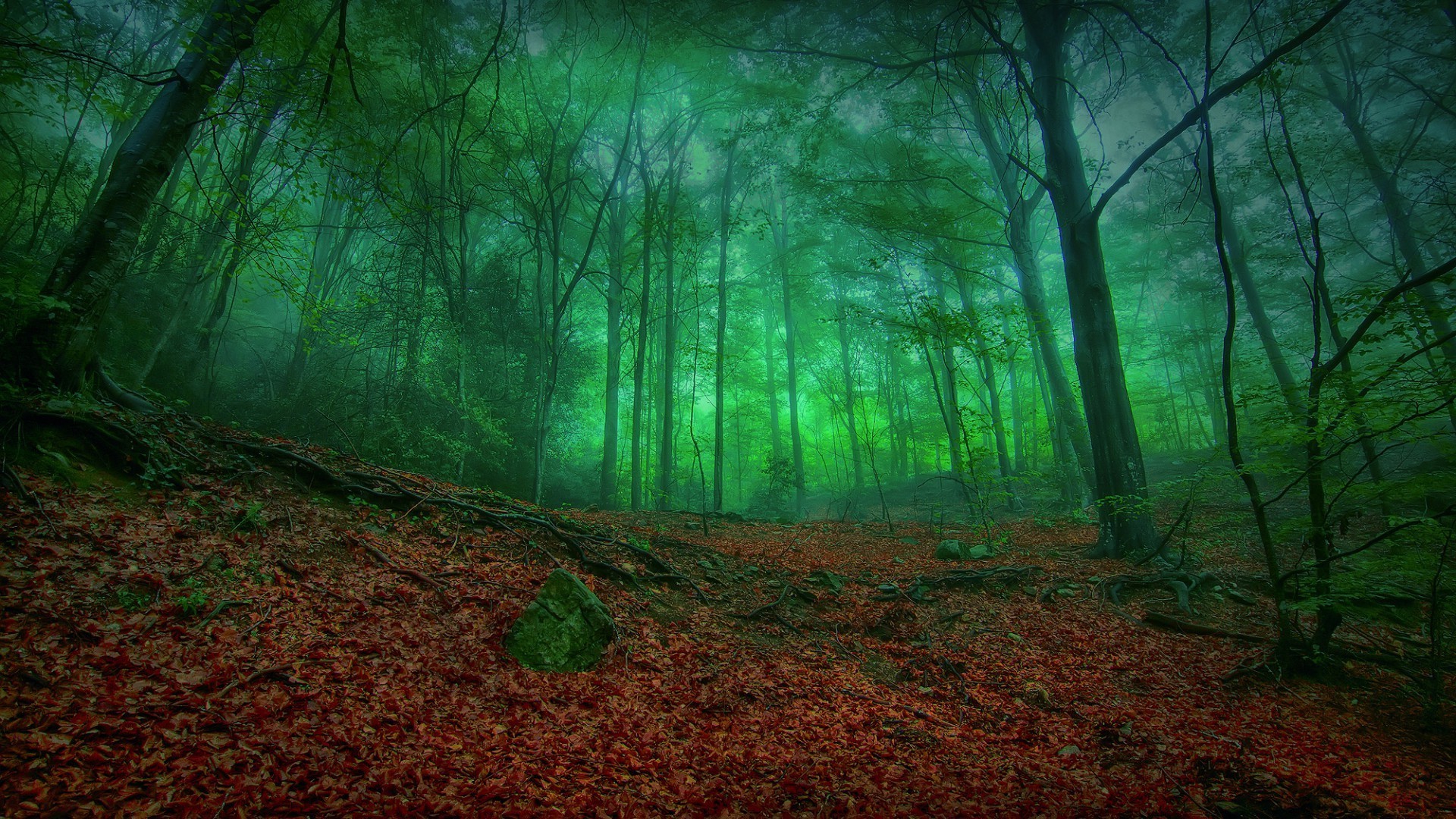 Nevoeiro sobre um rio em meio a uma floresta de neve