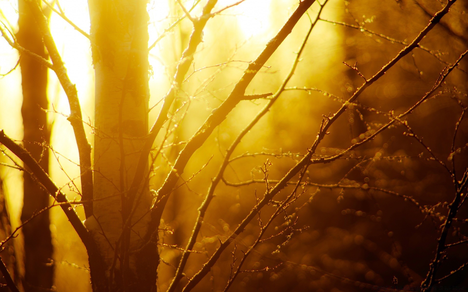 Floresta densa à beira do lago no fundo do céu do pôr do sol