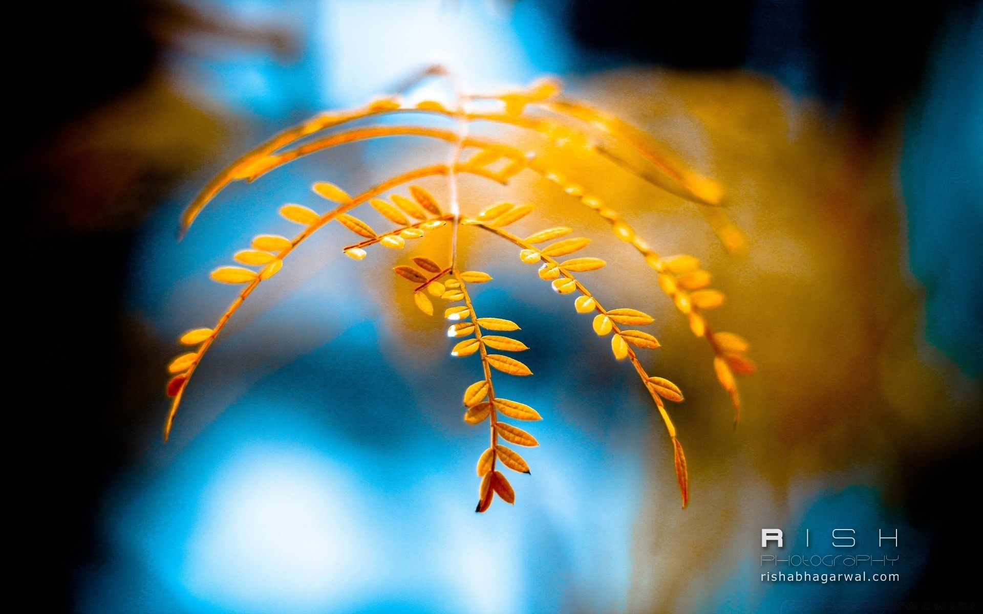 Fotografia macro. Desfocagem. Folha. Cor brilhante