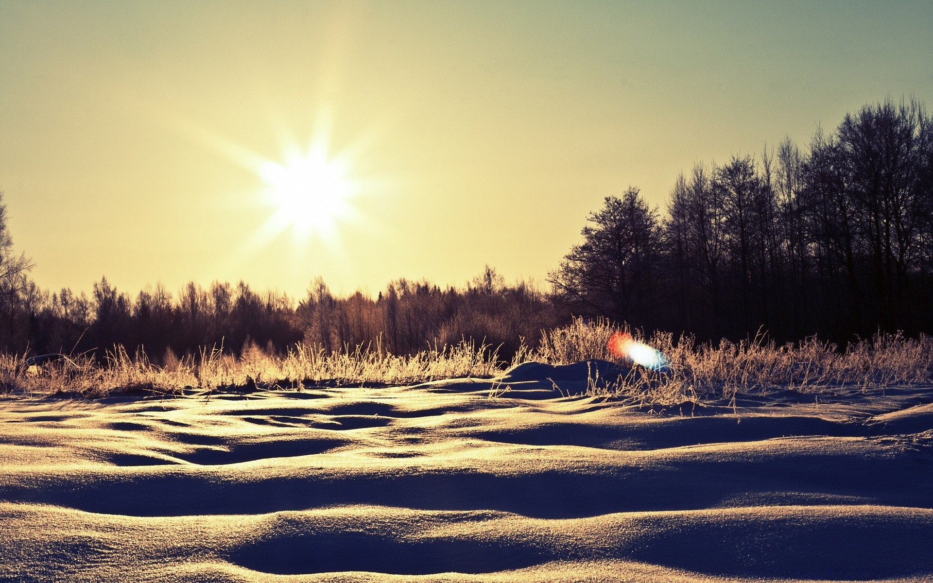 Amanhecer de inverno na floresta. Árvores sem folhas