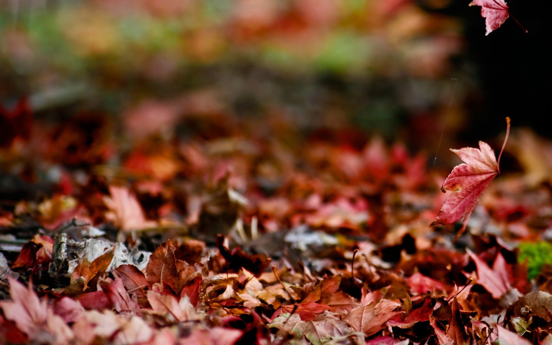 Terra na floresta coberta de folhas de bordo vermelhoTerra na floresta coberta de folhas de bordo vermelho