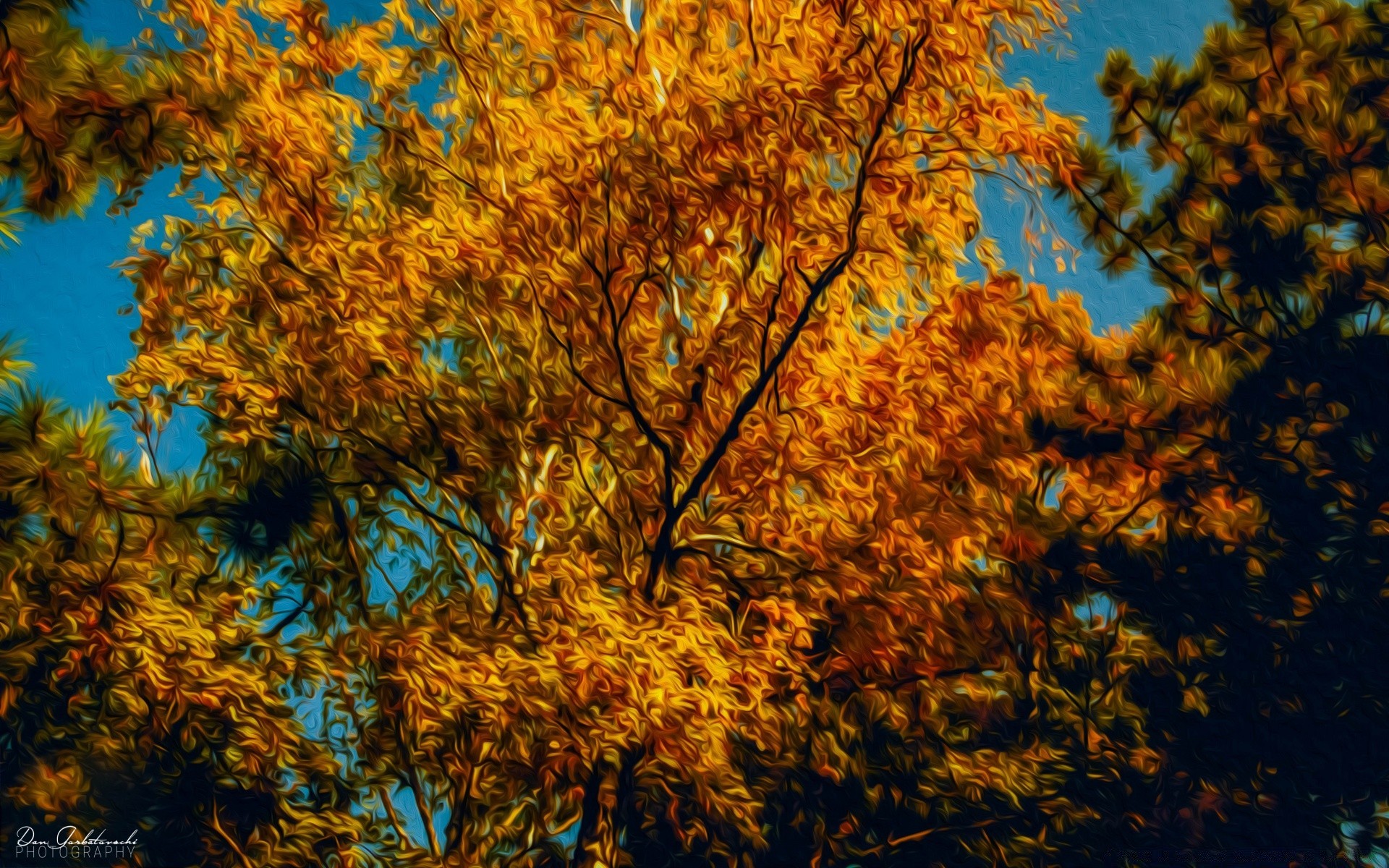 Foto de uma árvore de outono com folhas de ouro