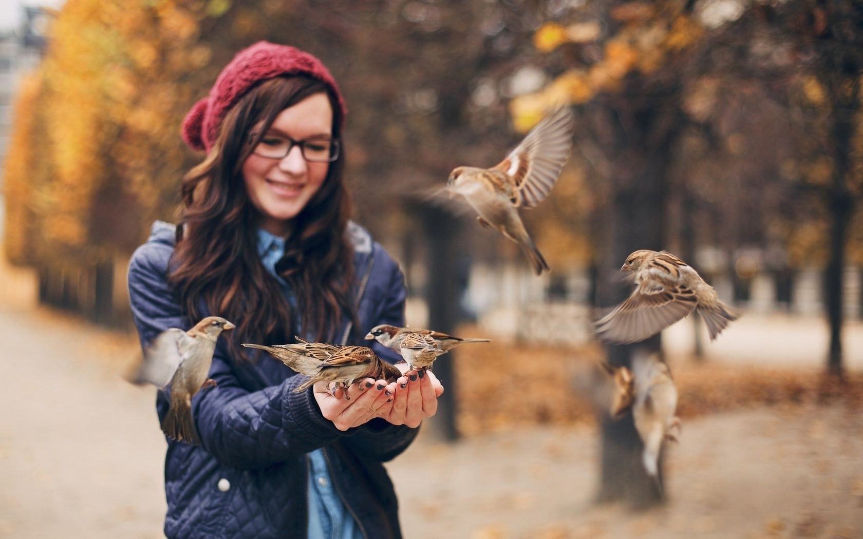 Alimentação das aves. Os pardais comem com as mãos