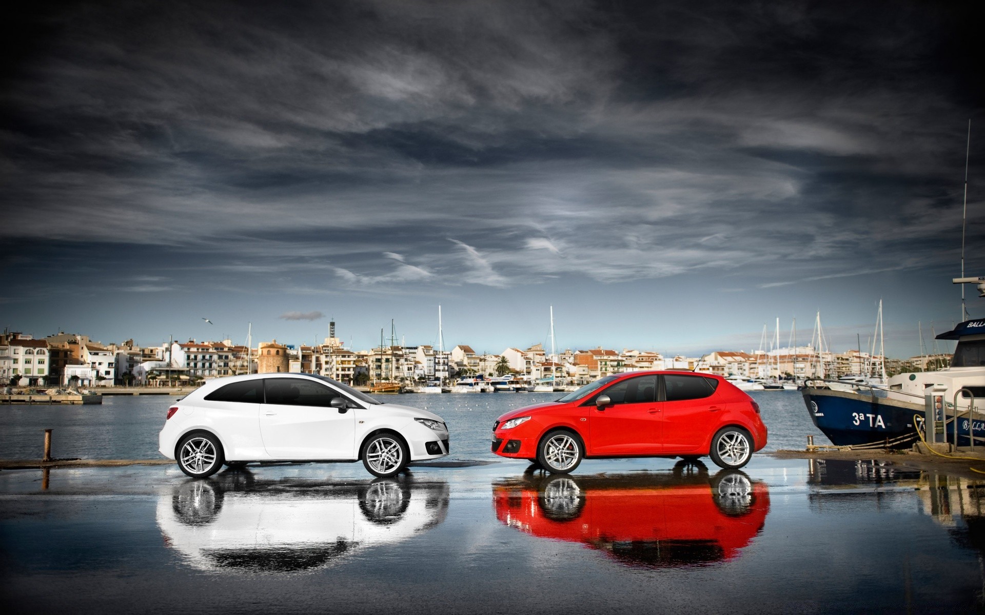 Fotos de dois carros na água