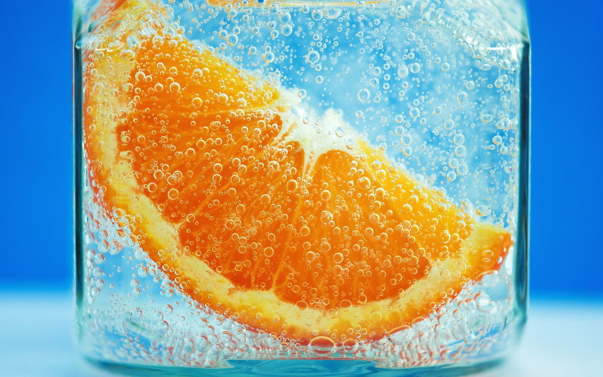 Uma fatia de apelina em um copo de água com gás