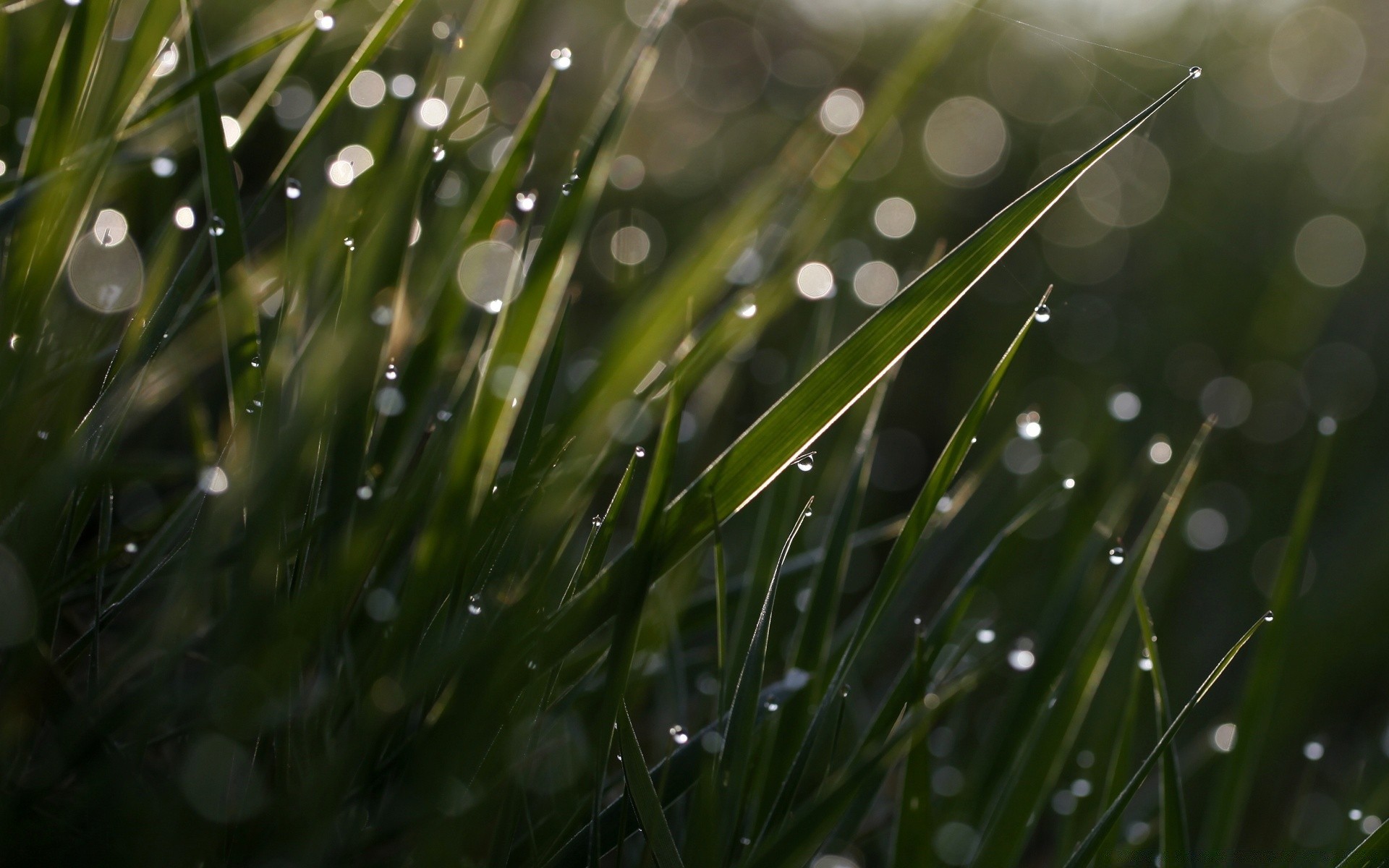 Orvalho e gotas na grama da manhã