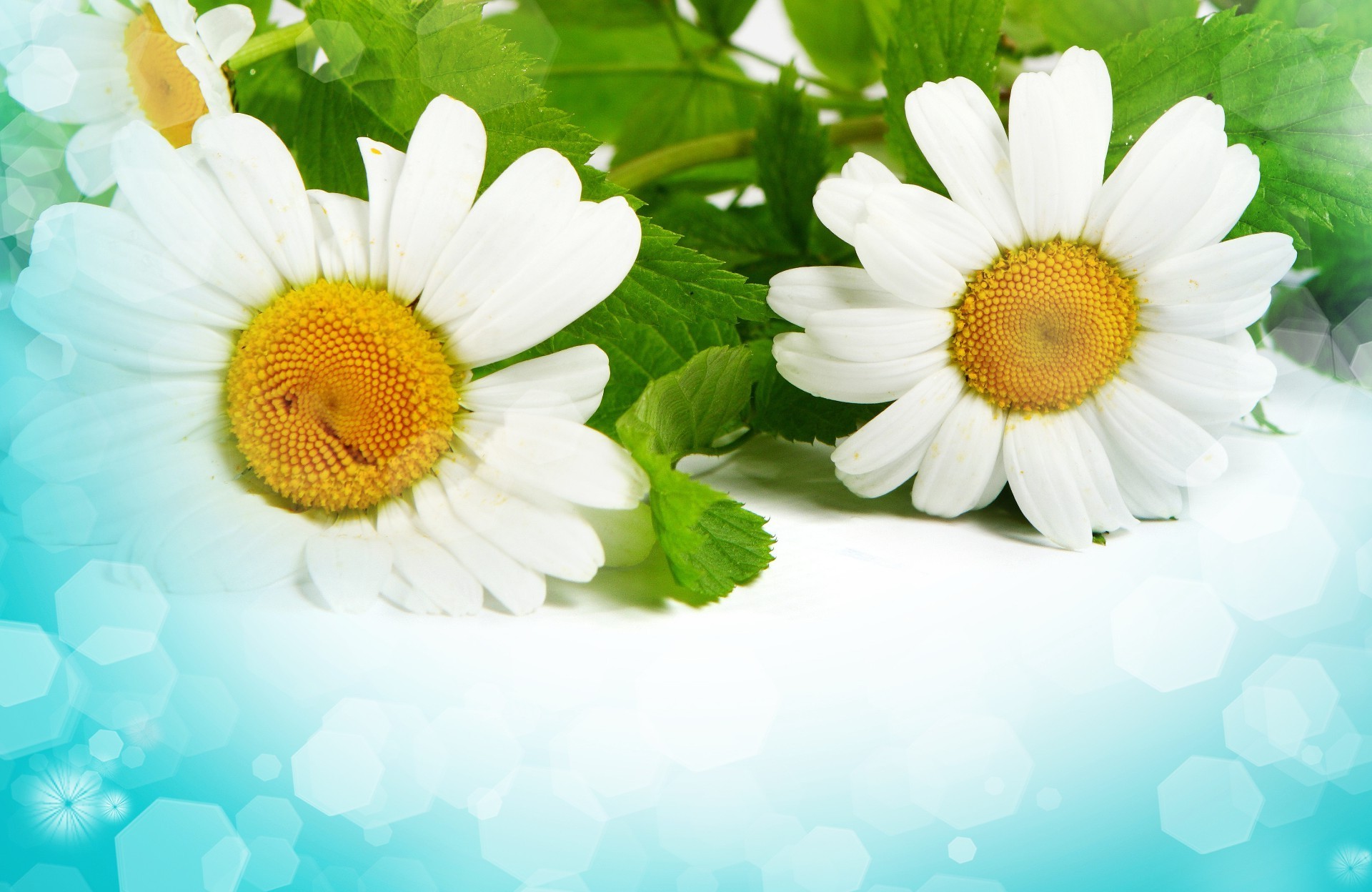 Margaridas brancas com folhas verdes