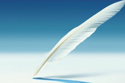 Pena branca em fundo azul e branco