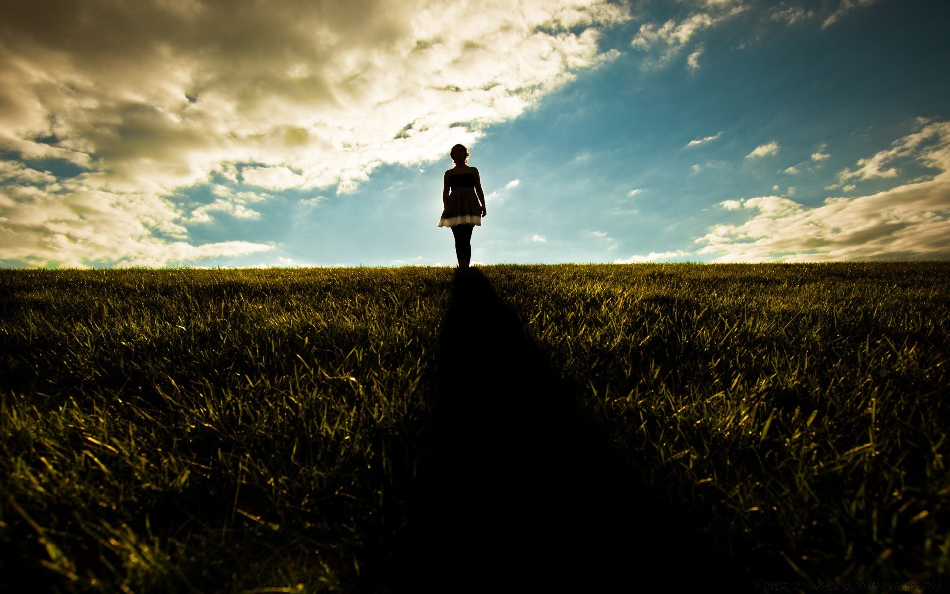 Menina em um vestido no fundo do céu
