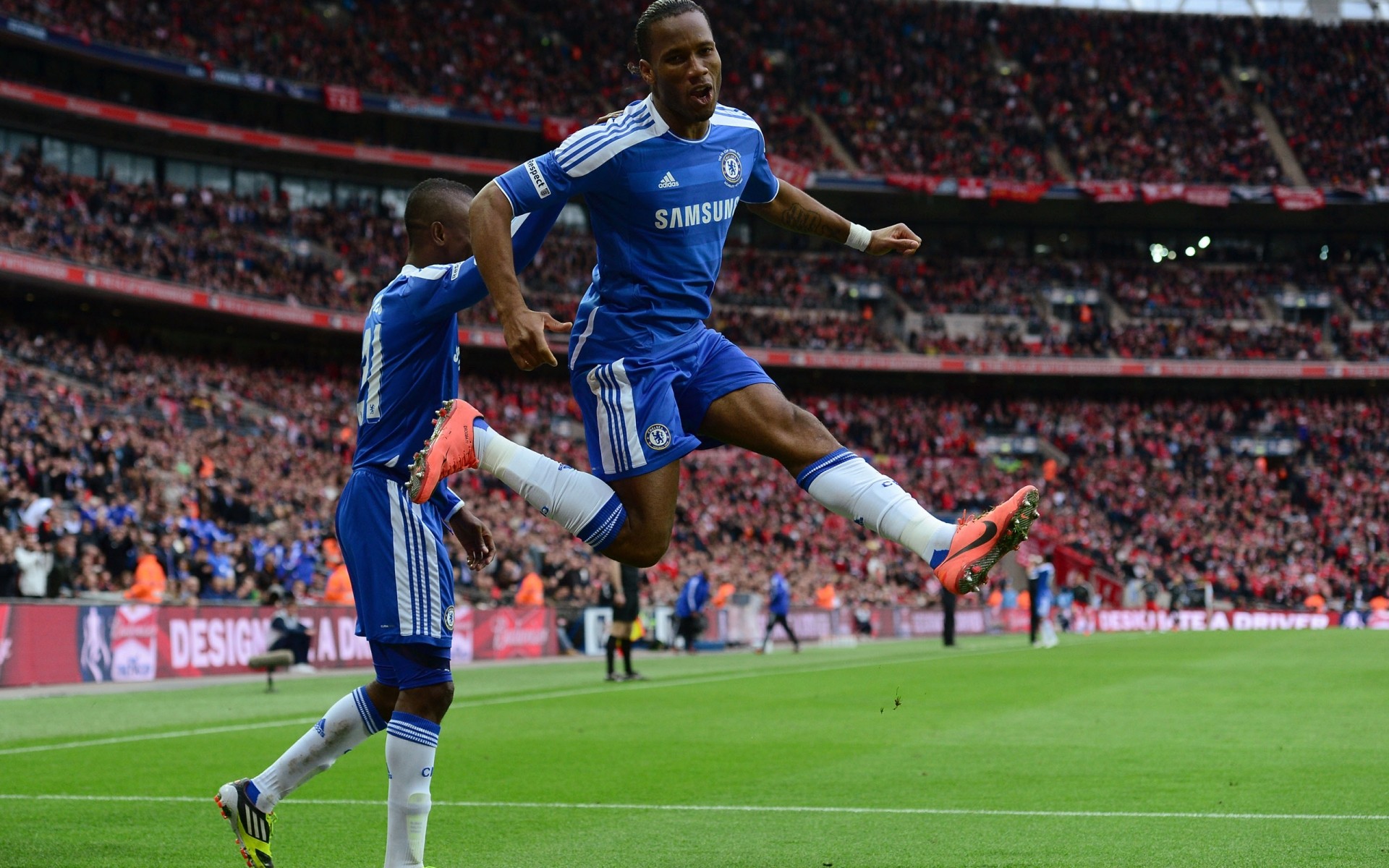 Jogador de futebol com uniforme vermelho e azul se ajoelha