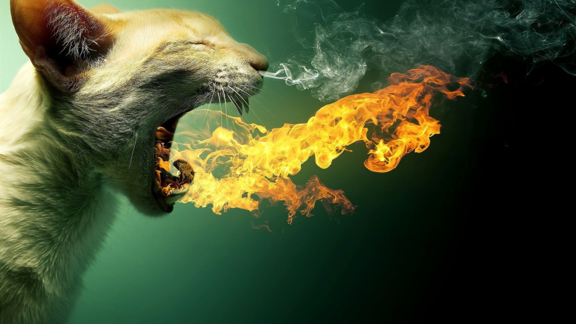 Gato com fogo pela boca
