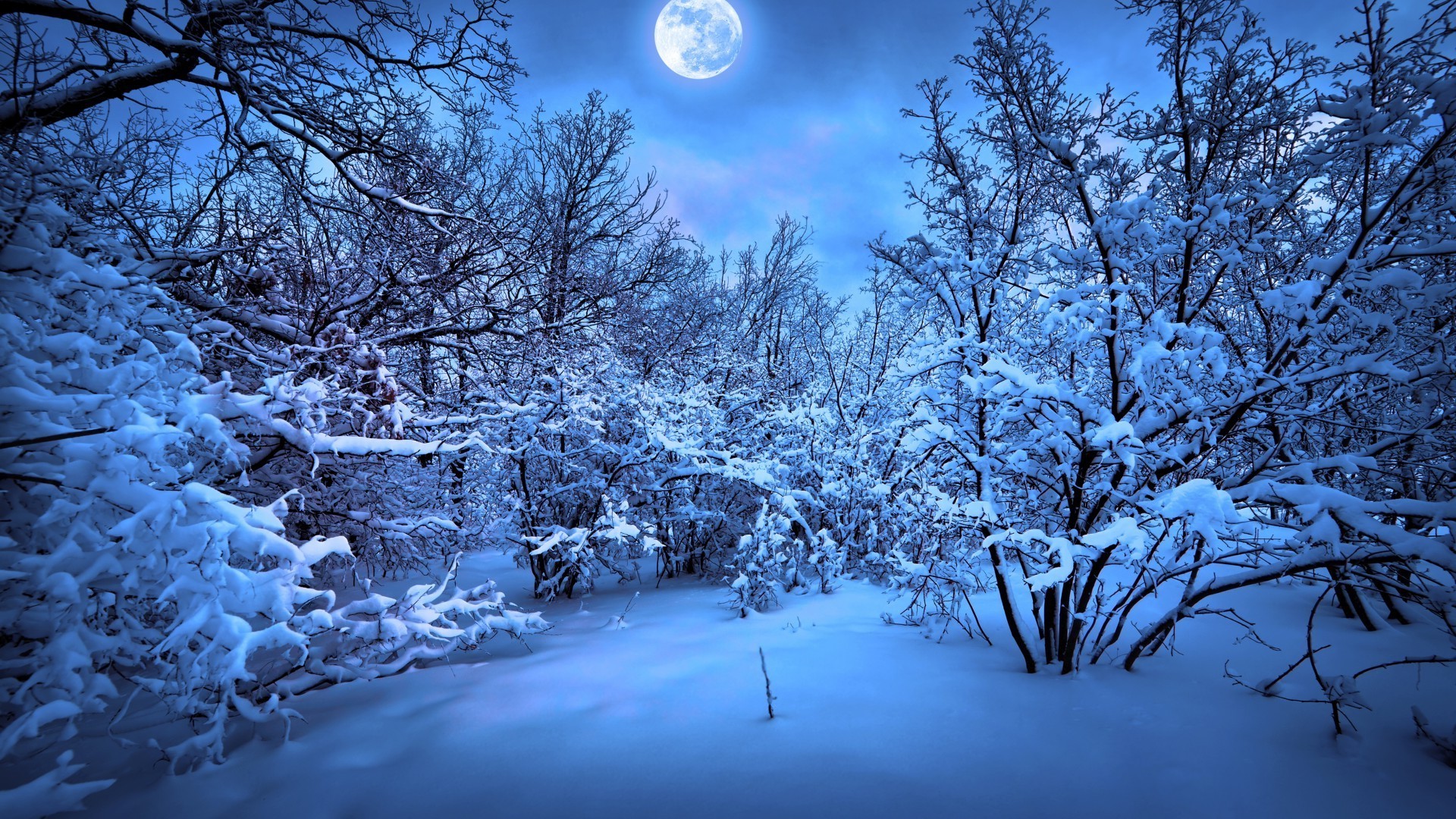 Noite fria de inverno na floresta
