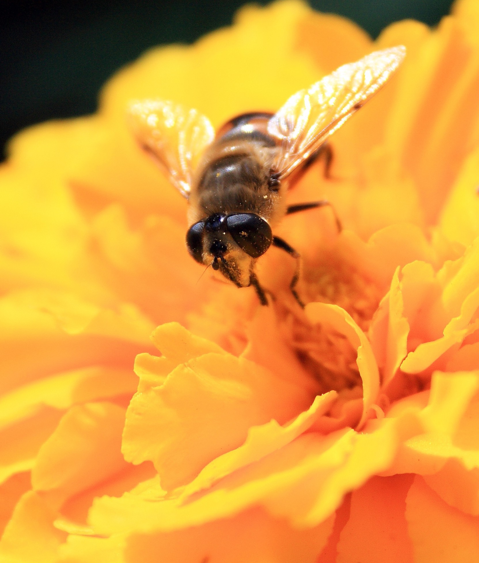 Fotografia Macro de uma flor amarela com uma abelha