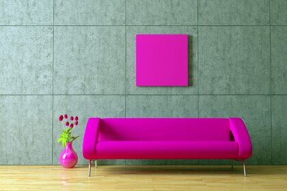 Decoração moderna. Móveis em rosa sobre fundo cinza