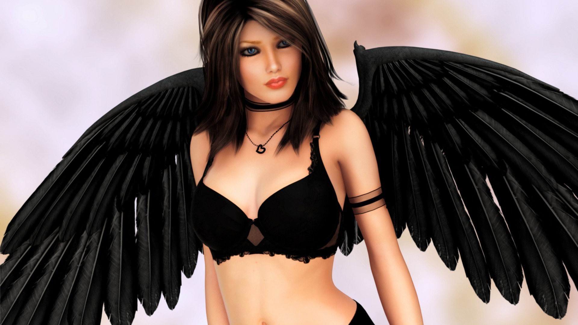 Menina em um quarto preto em um vestido curto de couro preto sentado no chão
