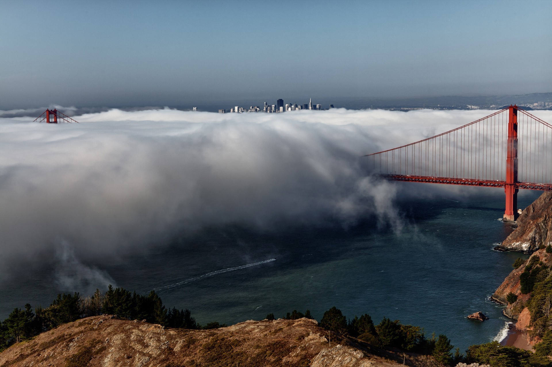 Neblina no estreito de golden gate em são franciscoNeblina no Estreito de Golden Gate em São Francisco