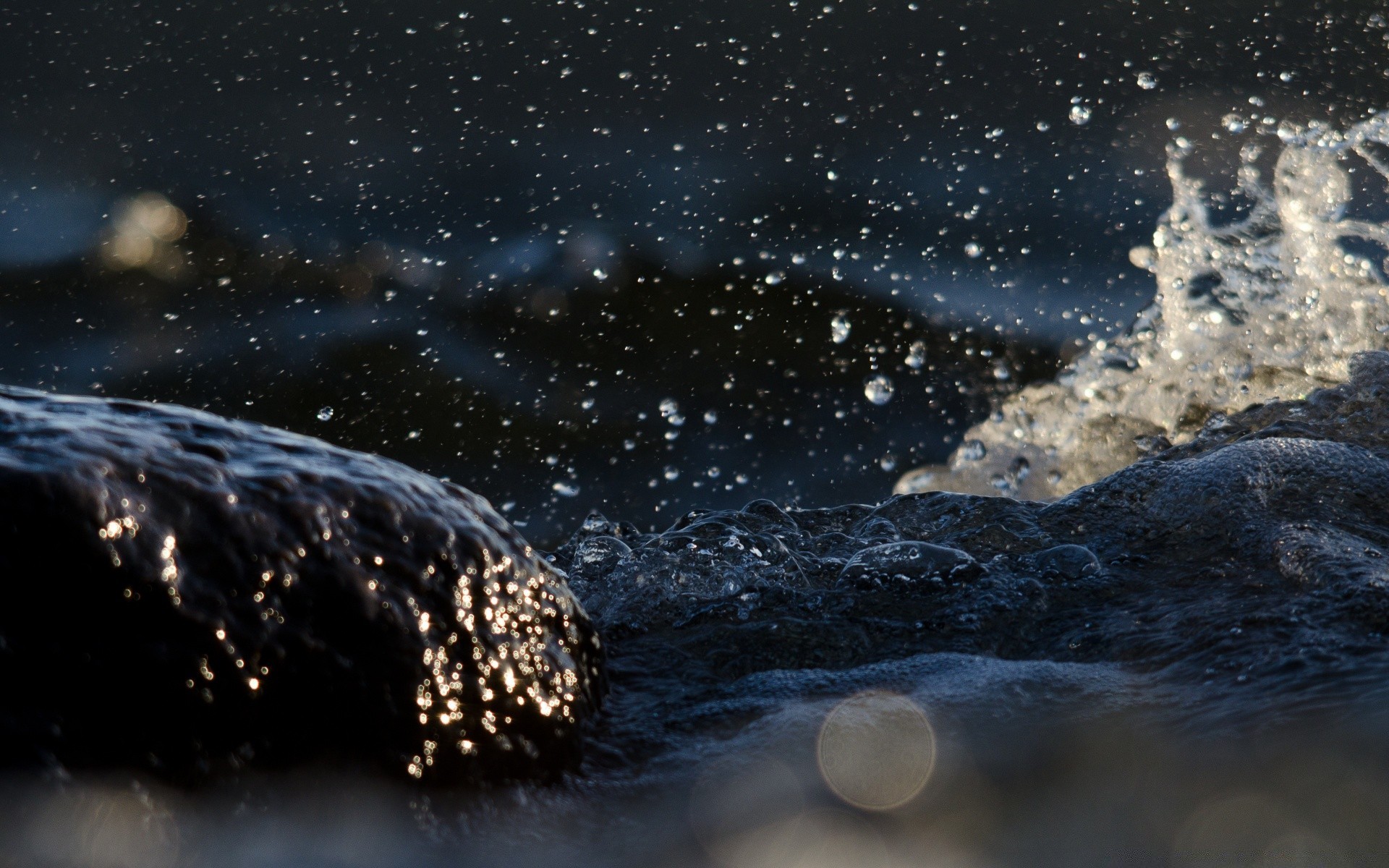 Gotas de água com luz azul