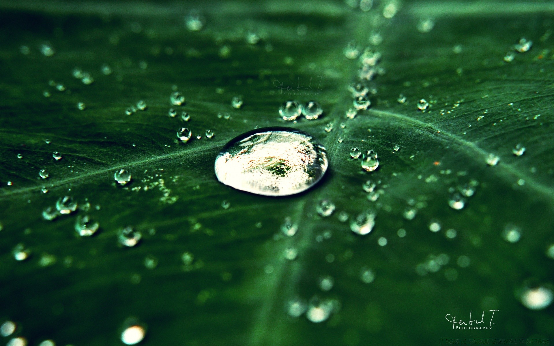 Fotografia Macro de orvalho EM UMA Folha Verde