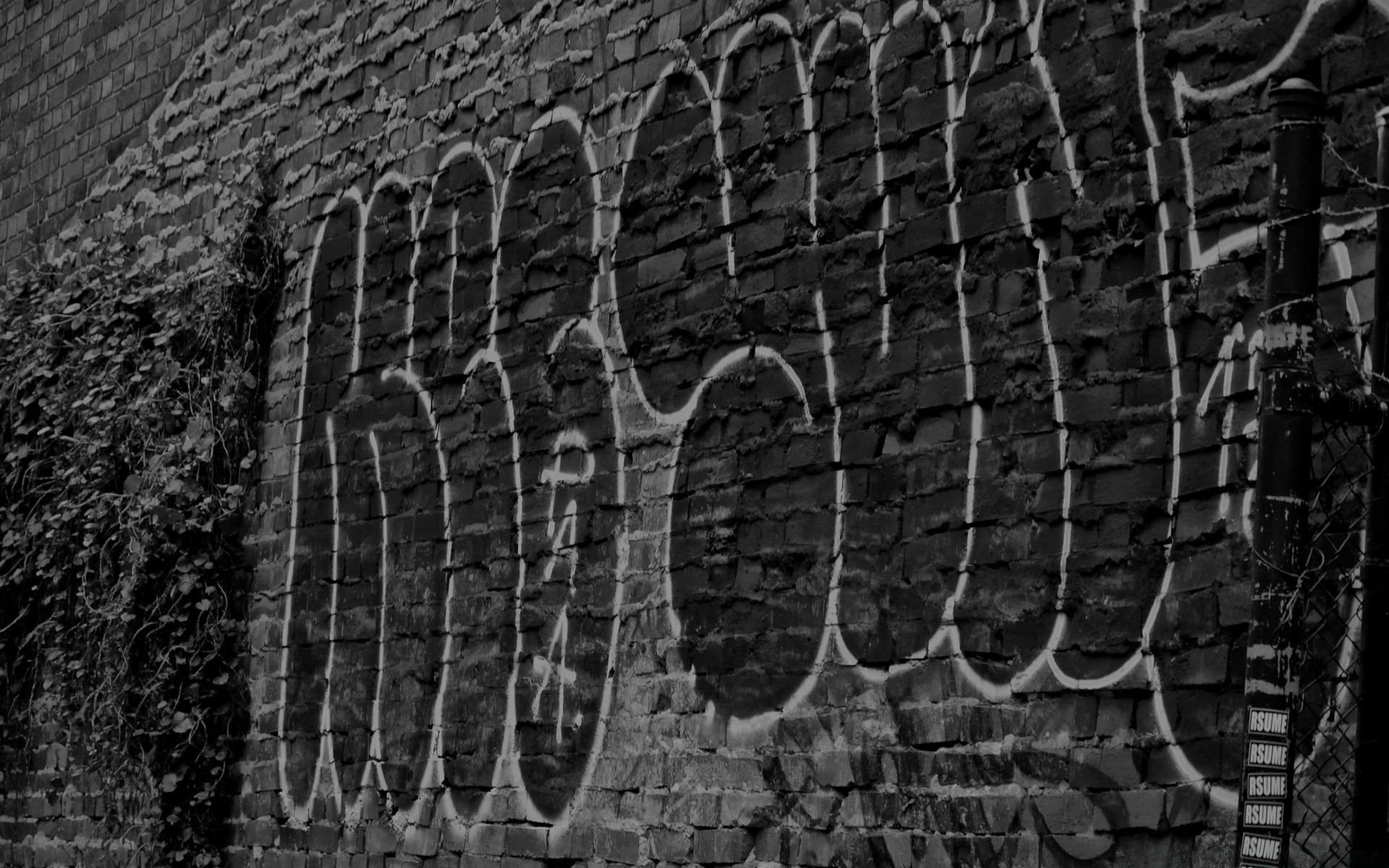 Fallout, Graffiti representando um personagem duplicado em um terno azul com uma faixa amarela