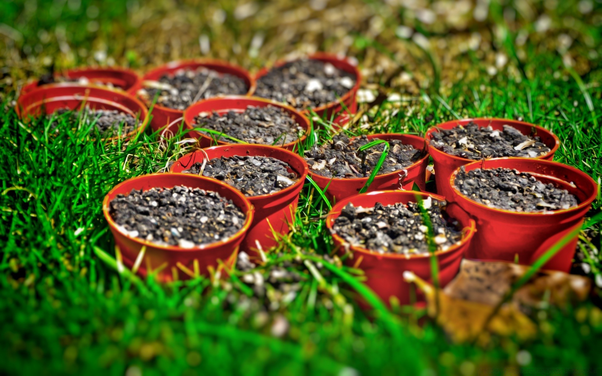 Vasos com terra. Grama suculenta