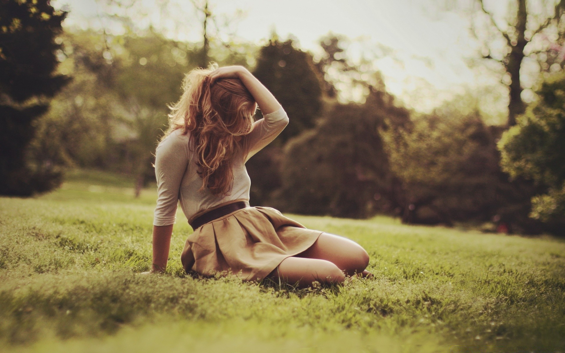 Menina sentada na grama na natureza