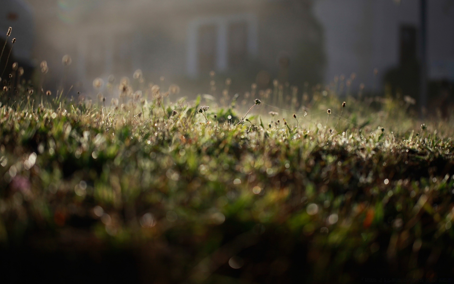 Orvalho na grama em uma manhã de Verão