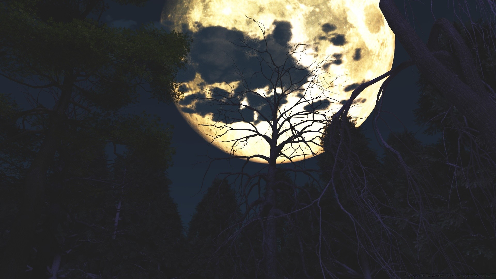 A grande lua sobre uma floresta tranquila