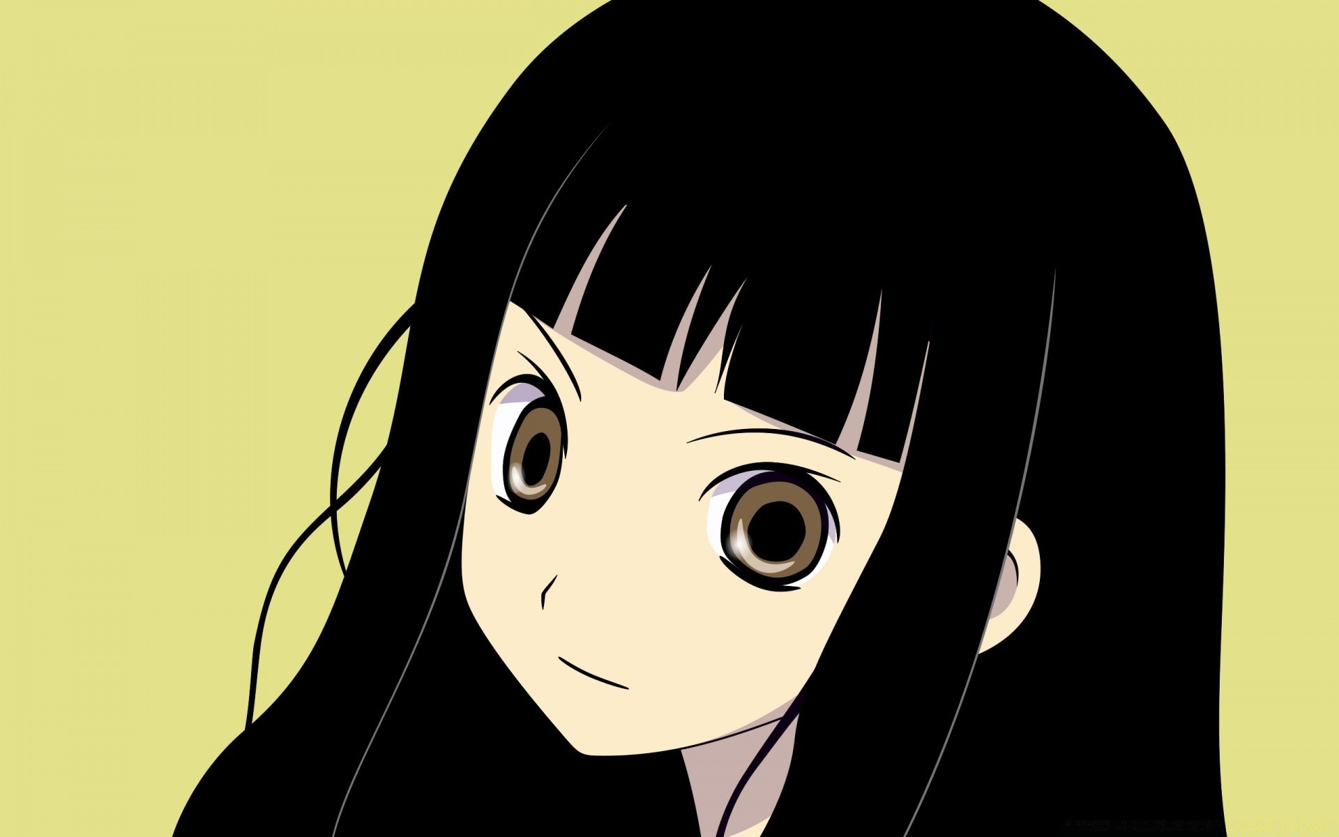 Uma menina com cabelo preto e olhos grandes. Figura. Anime