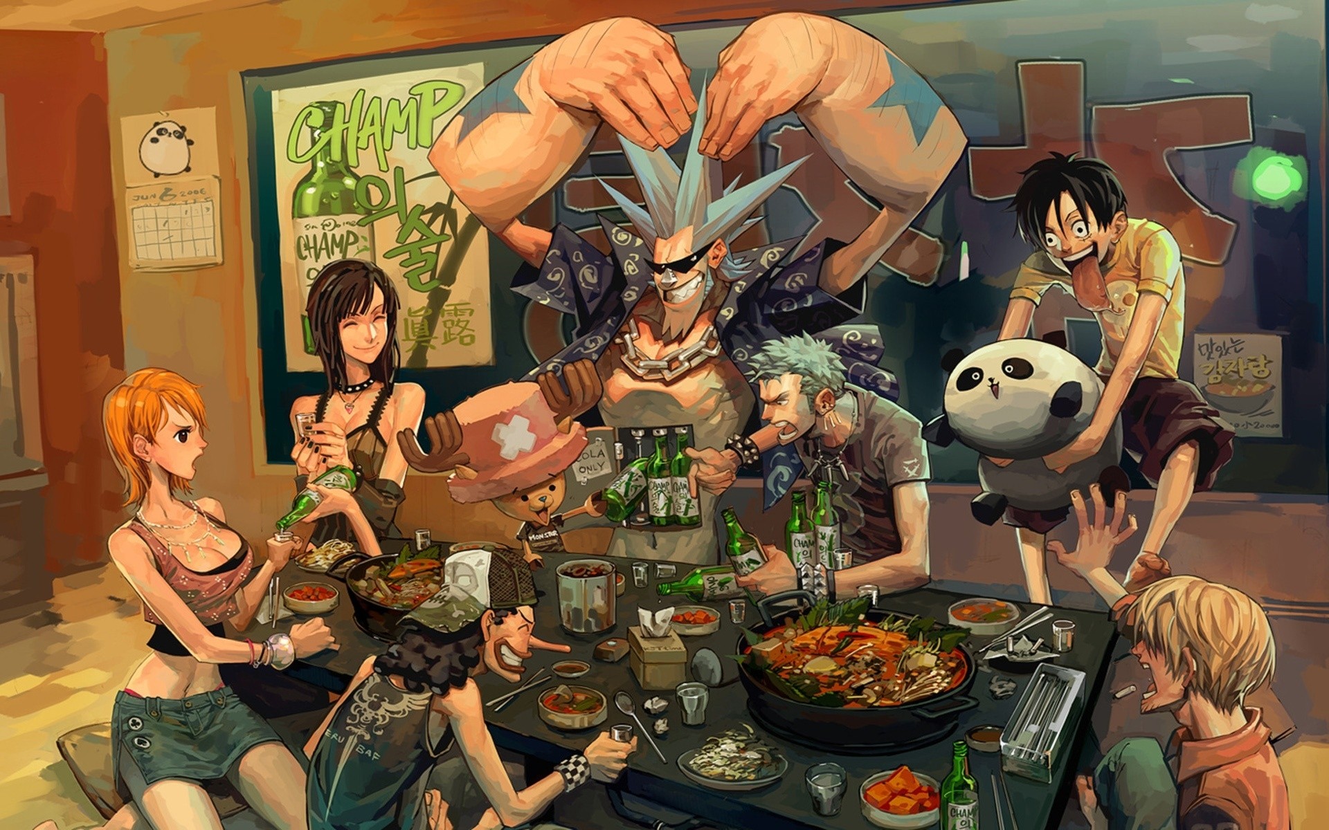 Desenho monocromático de um grupo de pessoas com um escudo e um martelo