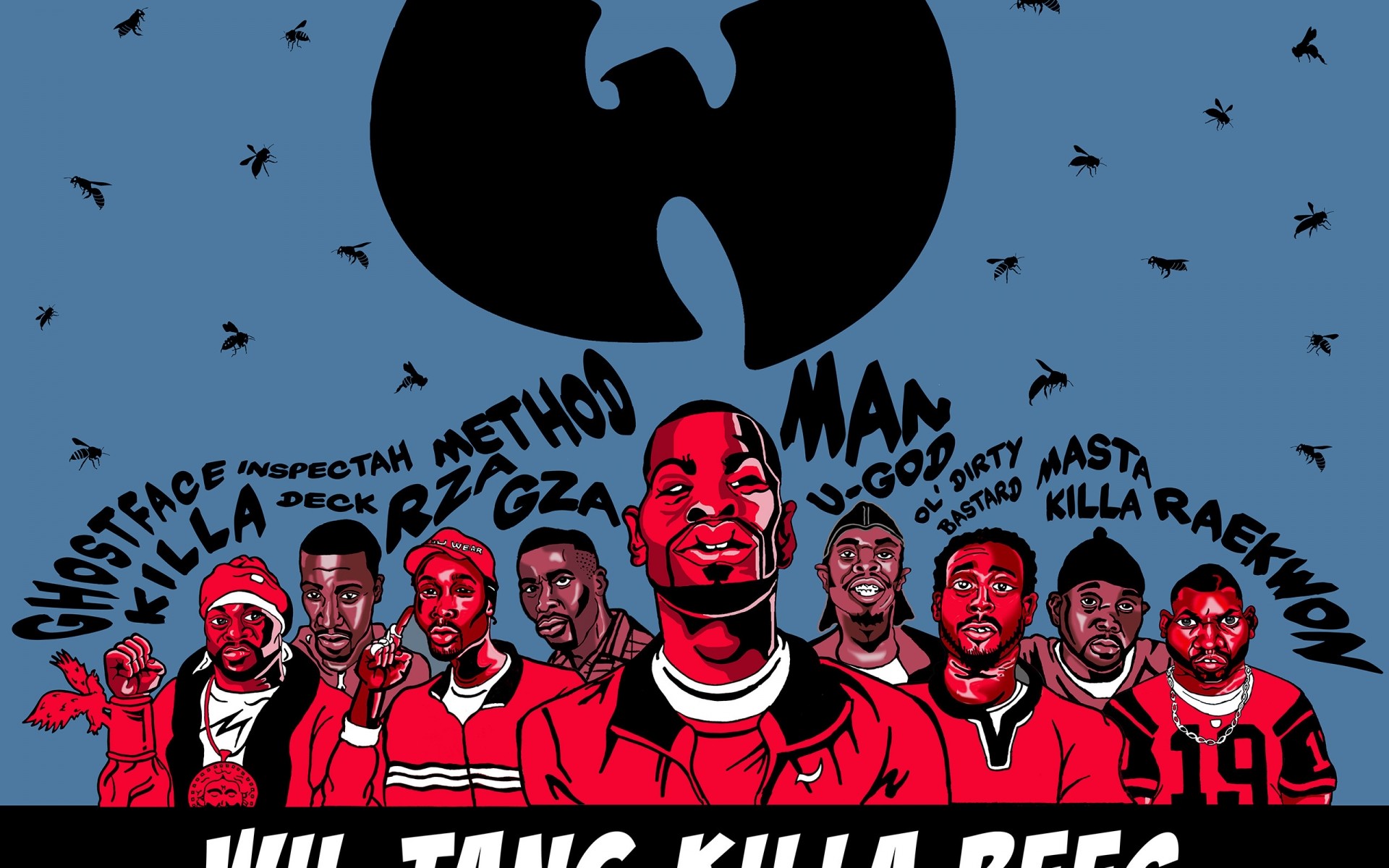 Ilustração em vermelho em azul grupo musical