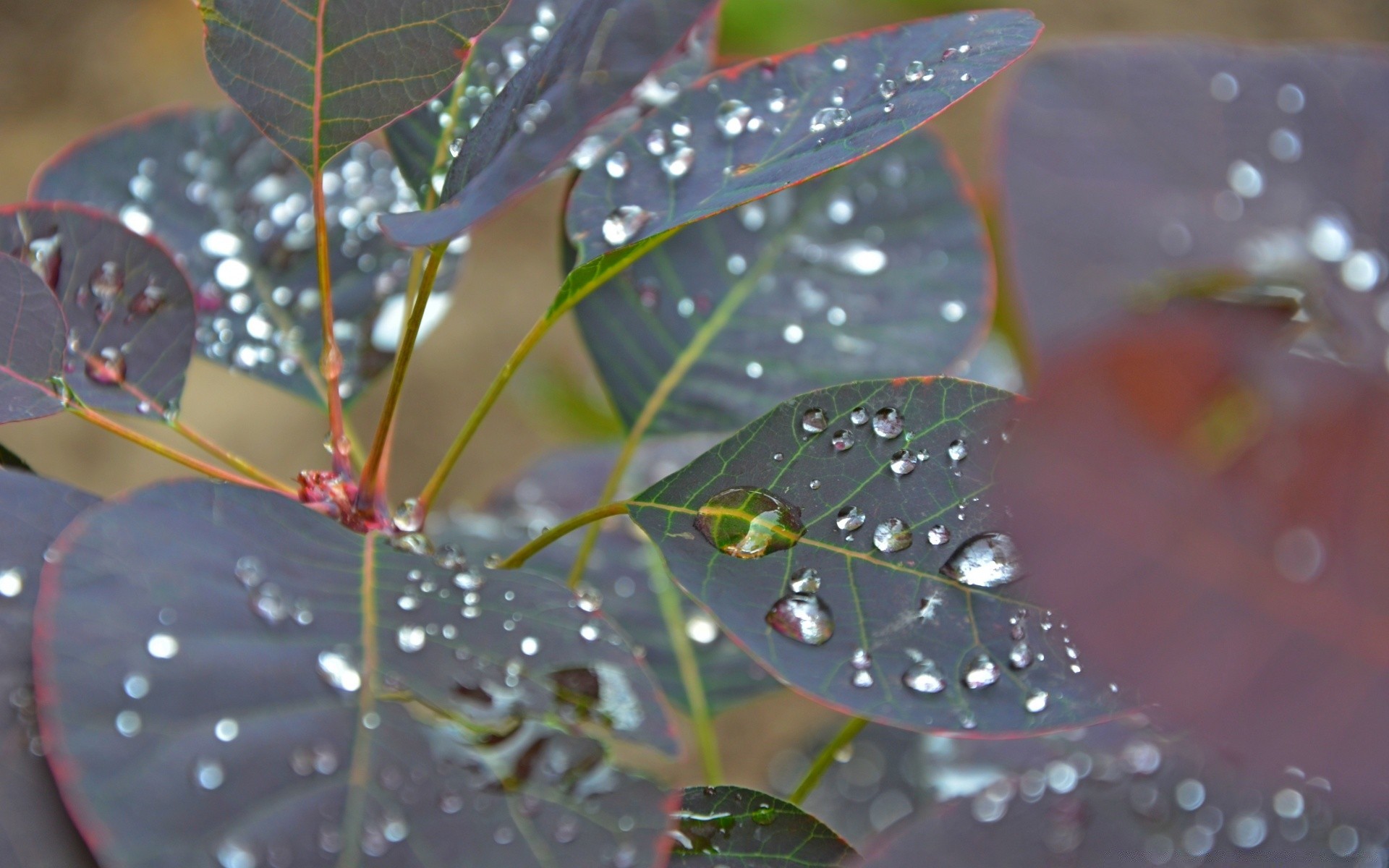 Gotas a escorrem pela relva. Orvalho. Chuva