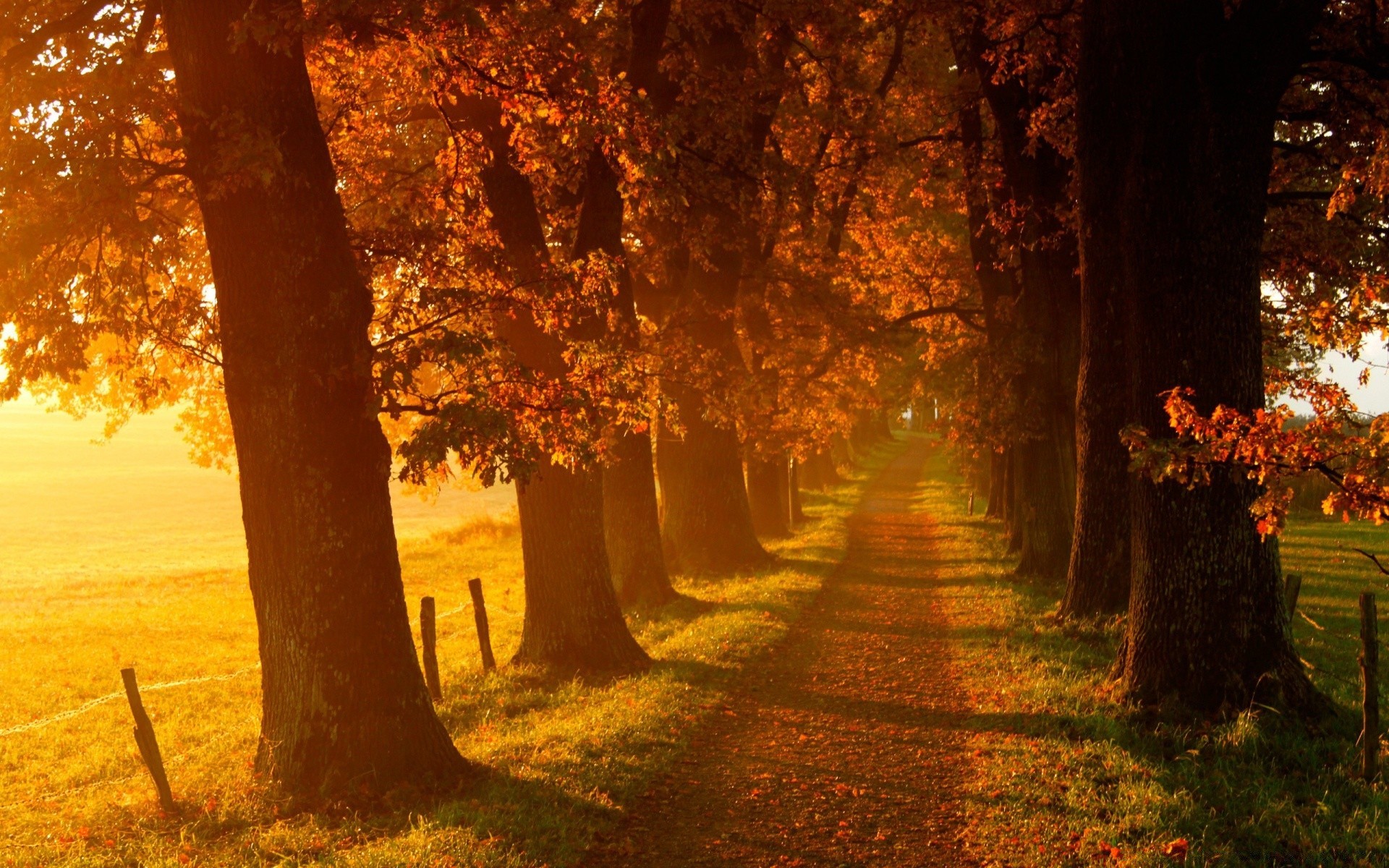Paisagem da floresta de outono de árvores com folhas amarelas em um dia quente