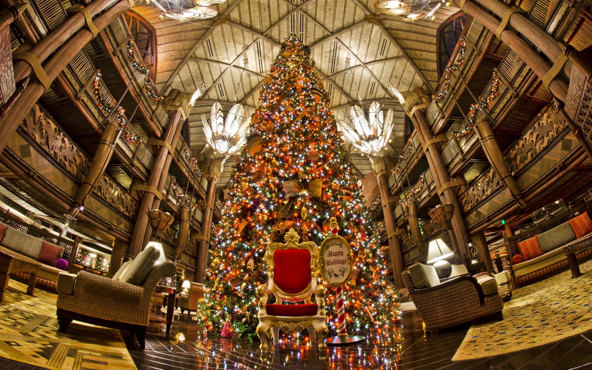 Fotos de uma árvore de Natal chique em guirlandas e brinquedos