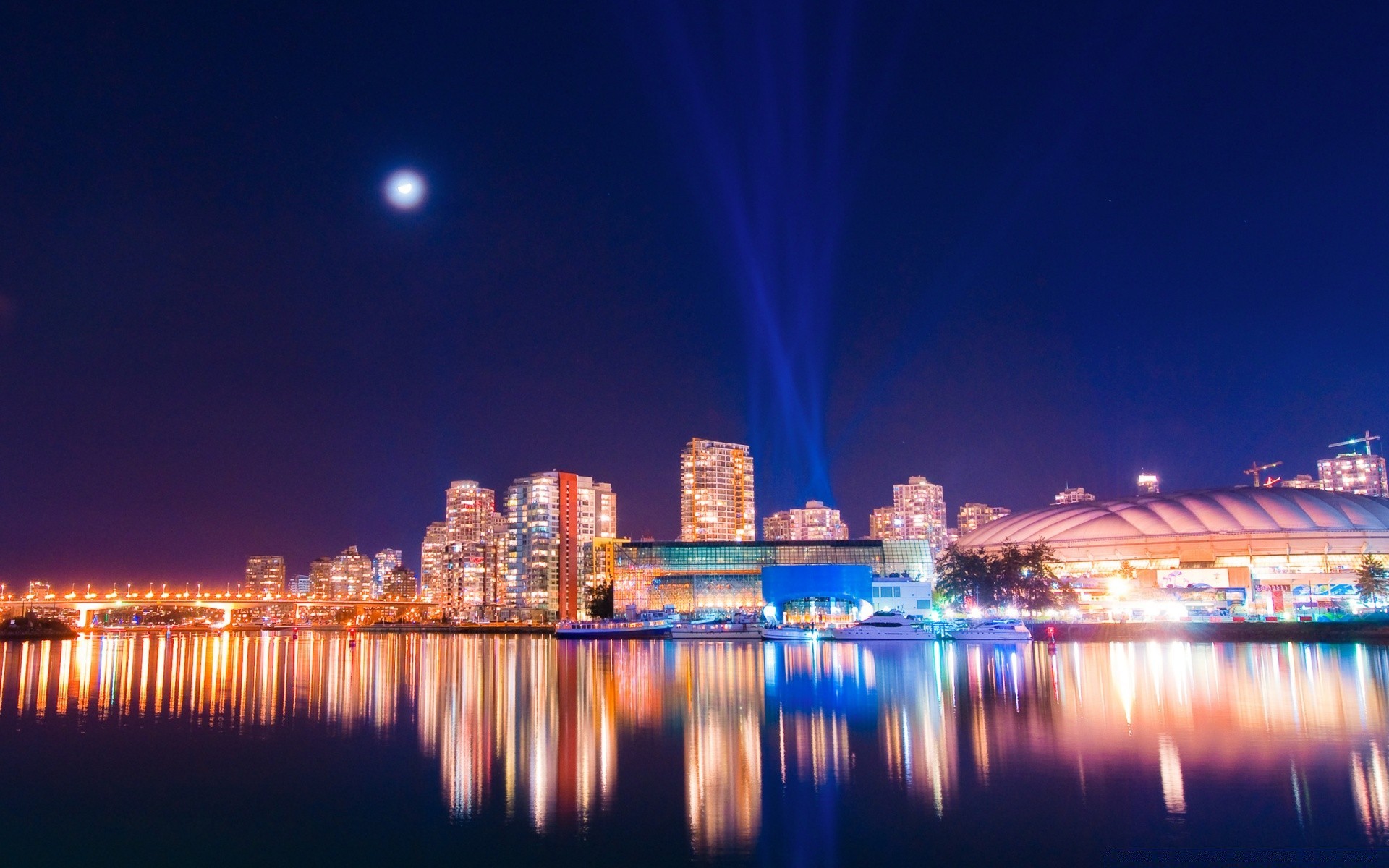 Luzes brilhantes de arranha-céus no centro da cidadeLuzes brilhantes de arranha-céus no centro da cidade