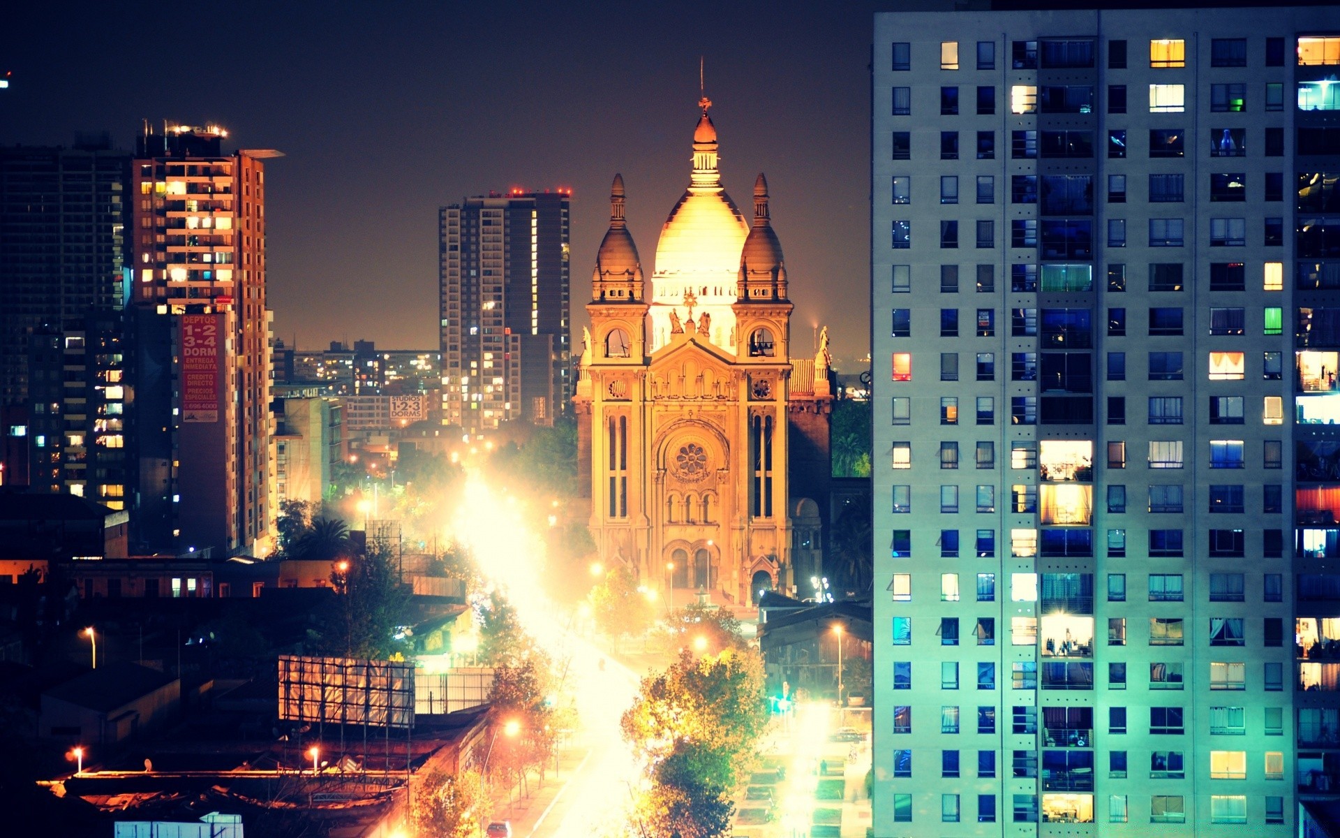 Helicóptero dormindo, carro no chão, paisagem noturna