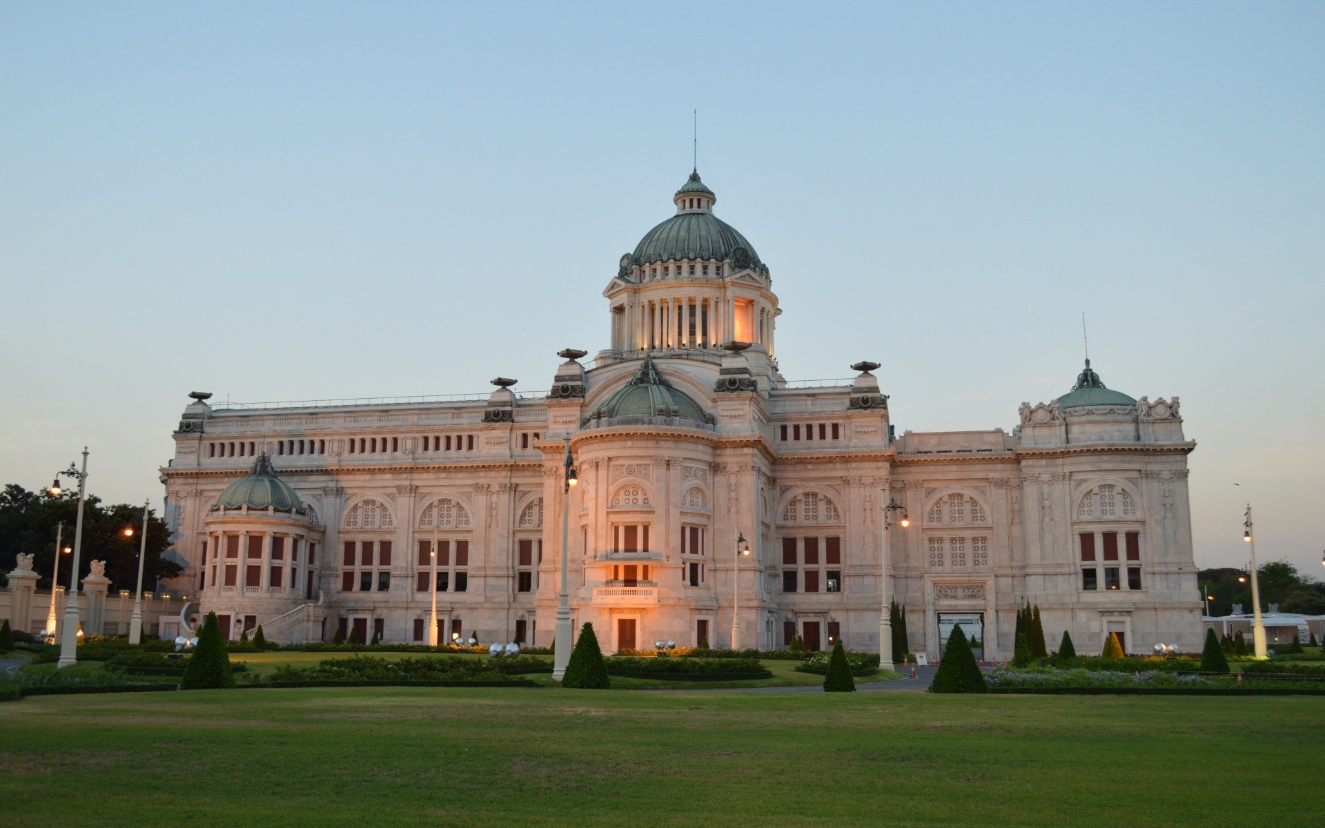 Edifício majestoso em um gramado verde