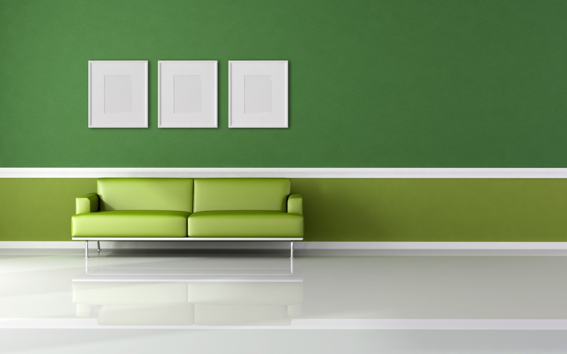 Quarto verde com sofá