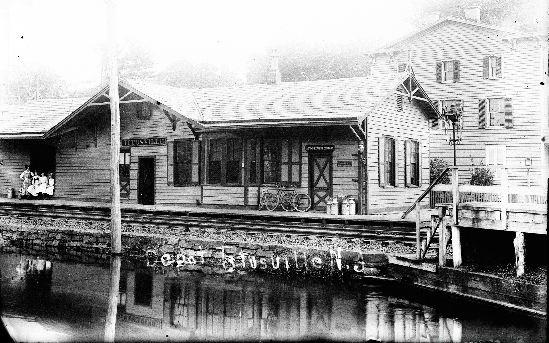 Os telhados vermelhos das casas no topo da planície de inundação do rio