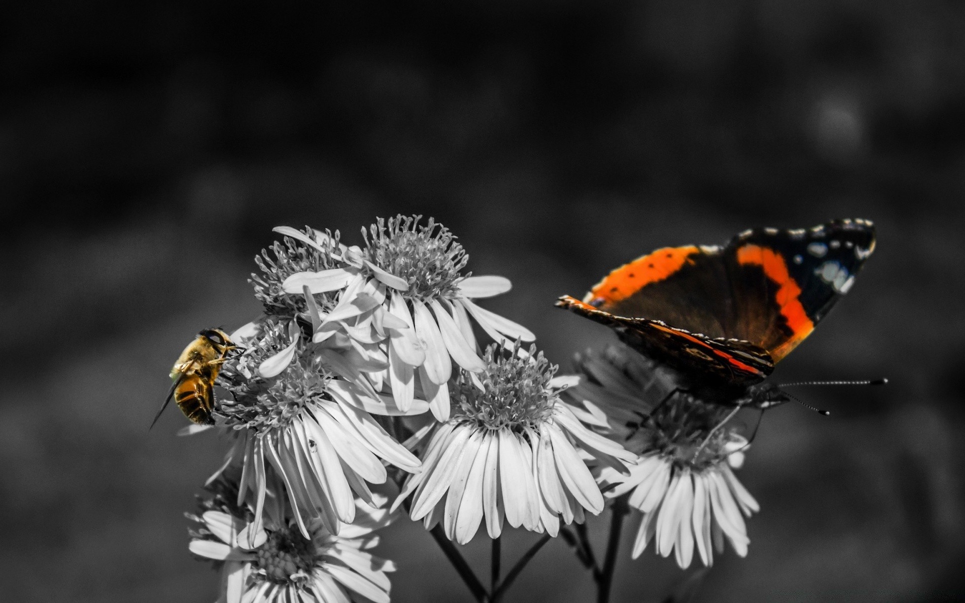 Abelha e borboleta em preto e branco