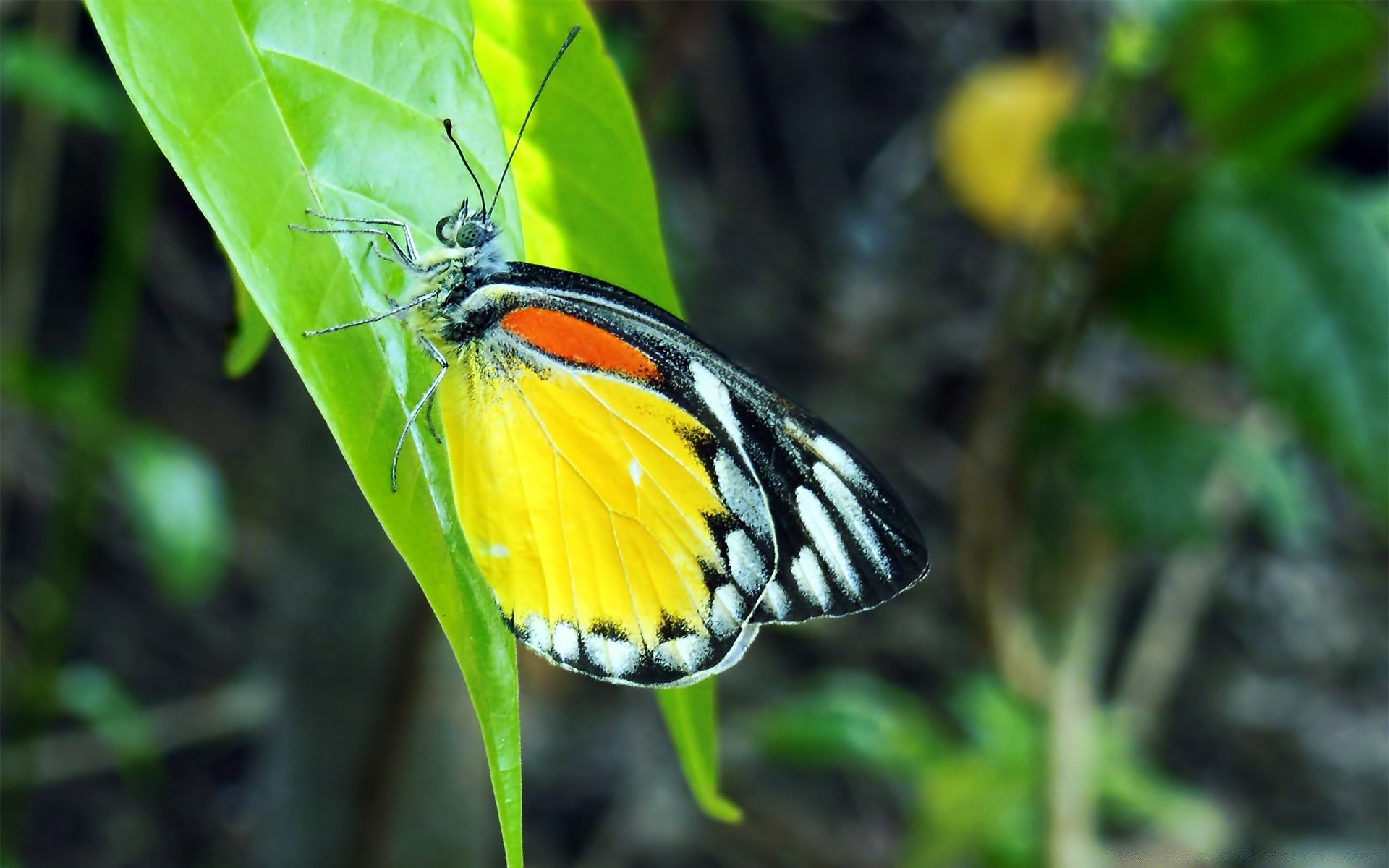 Borboleta colorida na rua sentada