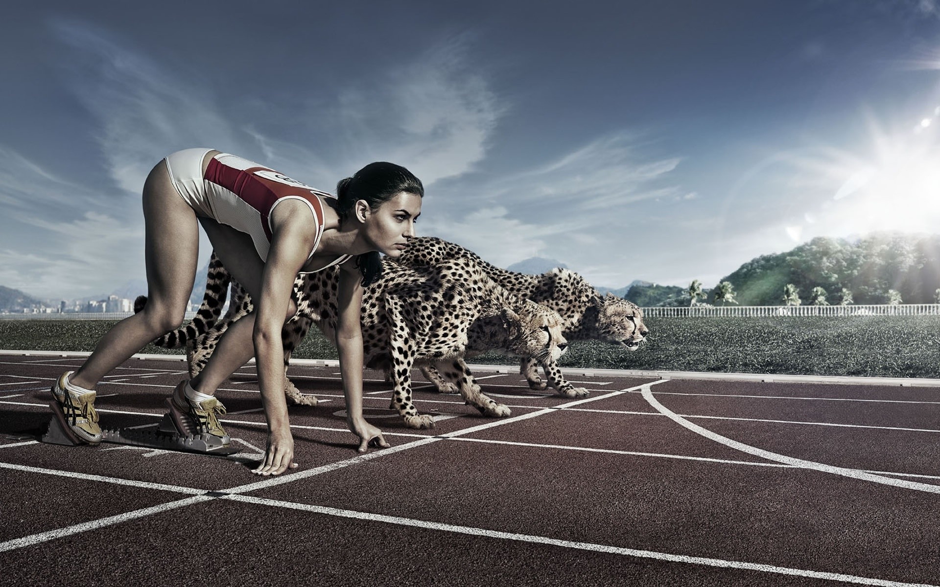 Menina-atleta e jaguares na natureza