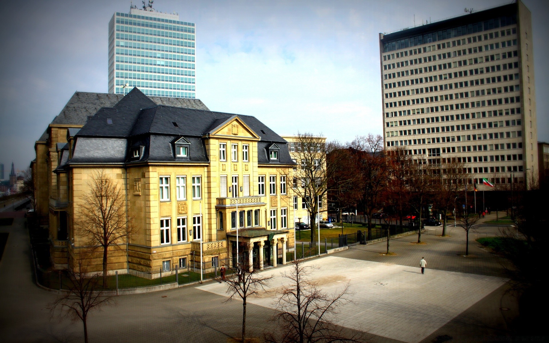 Contraste de casas de diferentes estilos de arquitetura na cidade