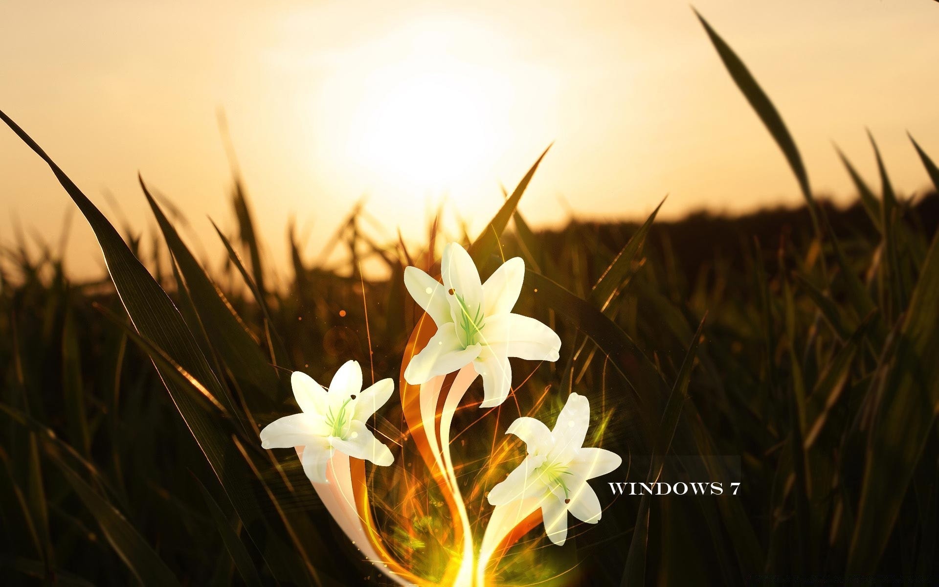 Três flores brancas no fundo do campo