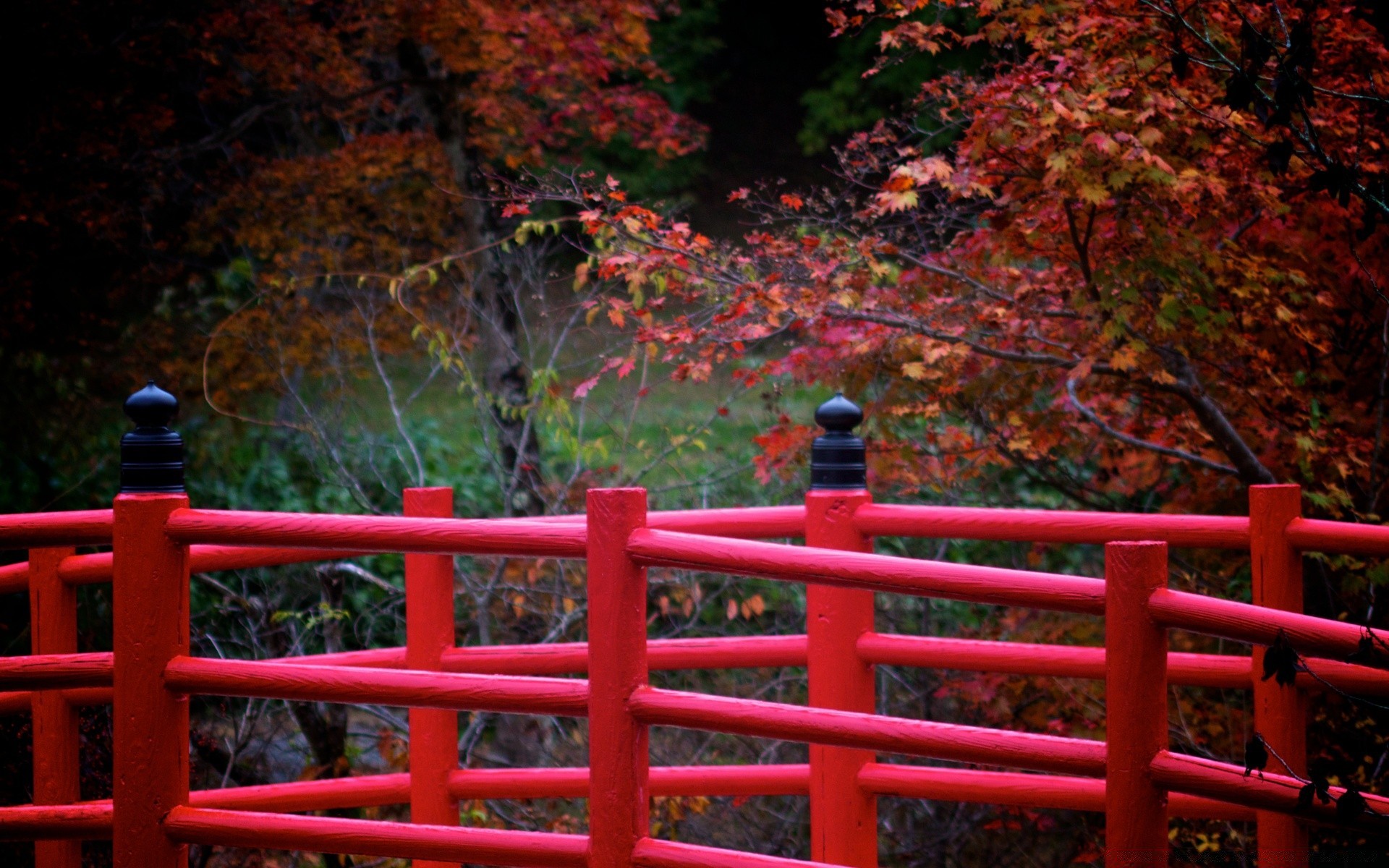 A cerca vermelha complementa perfeitamente a atmosfera do outono